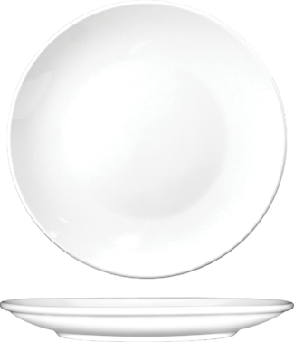 Torino™ Coupe Plate Create stylish table settings with this International Tableware Torino 10" round European white coupe porcelain plate. If you're in need of durable and stylish dinnerware that won't break the budget, look no further! Thanks to a fully vitrified construction, this plate offers the durability you need to ensure years of reliable everyday use. It is manufactured to withstand the rigors of repeated use in commercial dish machines. Not only hard and durable, but this porcelain piece is also non-porous, allowing it to resist liquids and grease to prevent staining and maintain its quality appearance.