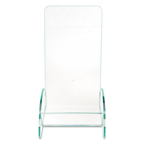Sleek design with green-tinted edges has the look of a high-end glass. Use where image and value are equally important. Made from durable, lightweight acrylic. Leaflet Size—Holds 4" wide x 2 1/2" deep leaflets. Color: Green Tinted; Color Family: Green; Overall Width: 4.5"; Overall Depth: 4.5".