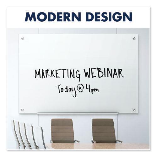 Ultra-modern, tempered-glass-surface whiteboard delivers high-quality performance. Durable, tempered-glass provides a smooth writing platform. This frameless board is a good fit for any contemporary office and will help you stay organized. Hardware is included for simple and secure wall mounting. Occasional cleaning is recommended for best performance. White Glass Magnetic Board Surface—Clearly displays any color dry erase ink. Board Type: Magnetic Dry Erase; Board Width: 36"; Board Height: 24"; Surface Material: Glass.
