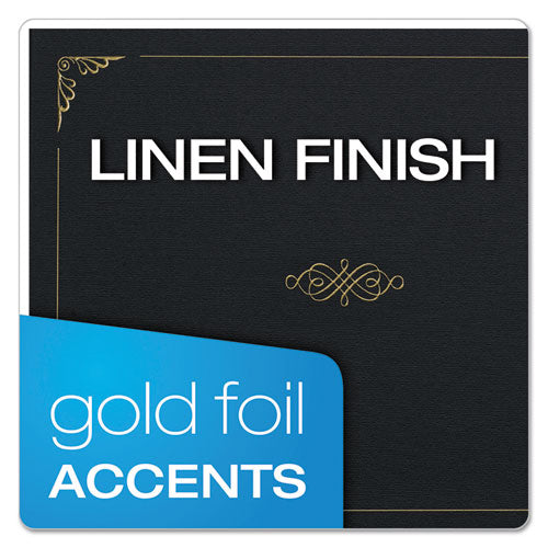 Handsome gold accents distinguish this heavy linen-like stock certificate holder. Reinforced slots securely hold corners for vertical or horizontal presentation of certificate, adding versatility to an elegant presentation. Color(s): Black; Width: 12.5"; Height: 9.75"; Insert Size: 11.25 x 8.75.
