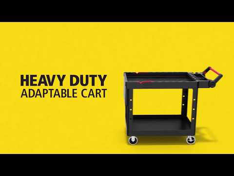 The heavy-duty adaptable cart provides superior versatility for tackling whatever task is at hand. Crafted of structural foam, this rolling service and utility cart can support up to 250 lb per shelf while reducing the need for time-consuming user modifications Features a variety of integrated features including an ergonomic adjustable handle with four positions for maximum comfort, a flip-up shelf, a slotted rim for small tool storage, two snap-in hooks for wrapping extension cords and locking casters to keep the cart stable during use. Color: Black; Color Family: Black; Capacity (Weight): 500 lbs; Caster/Glide/Wheel: Four Casters (2 Locking).