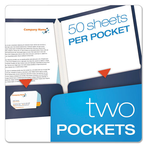 High Gloss Laminated Paperboard Folder, 100-sheet Capacity, Navy, 25-box
