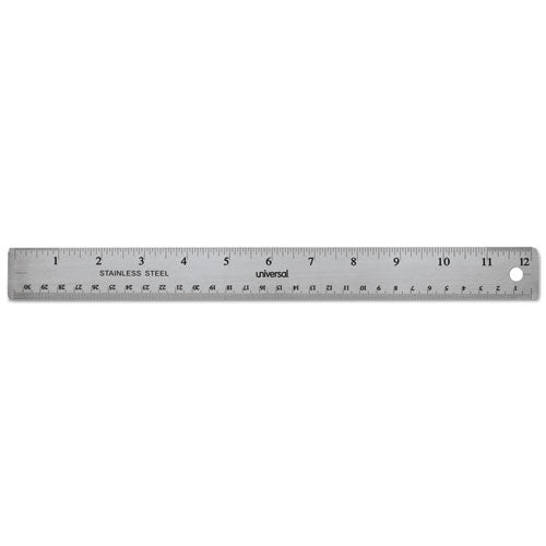 UNIVERSAL® Stainless Steel Ruler W-cork Back And Hanging Hole, 12", Silver
