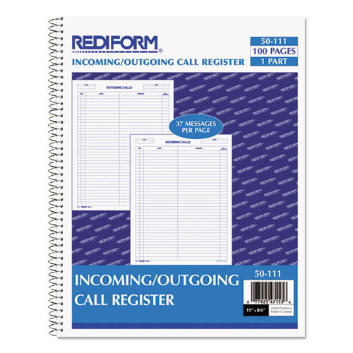 Ideal as a voice mail message log. Record incoming and outgoing calls on facing pages. Space for record date, time, name and message. Form Size: 11 x 8 1/2; Forms Per Page: 1; Number of Entry Lines: 37; Form Quantity: 3700.